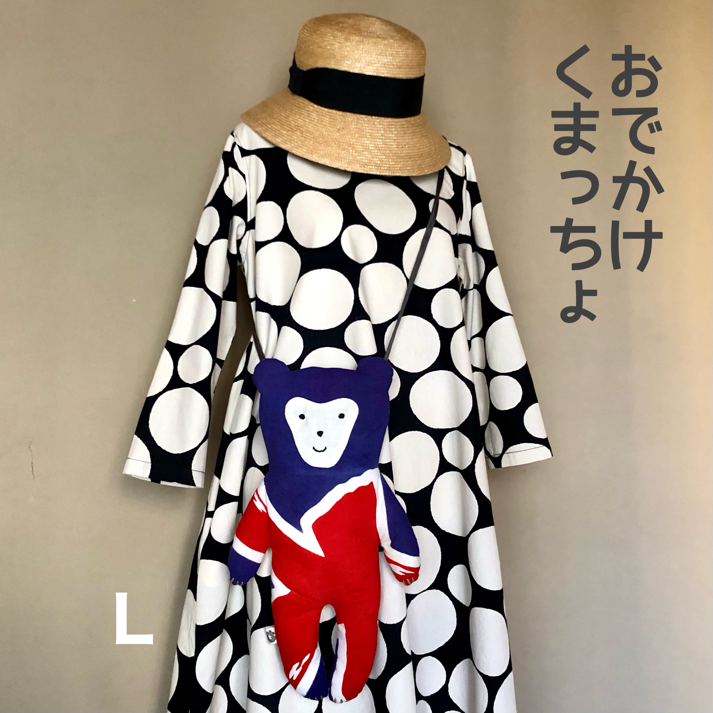 役目を終えた大漁旗から作られたクマをモチーフにしたオリジナルキャラクター「くまっちょ」のポシェットです。