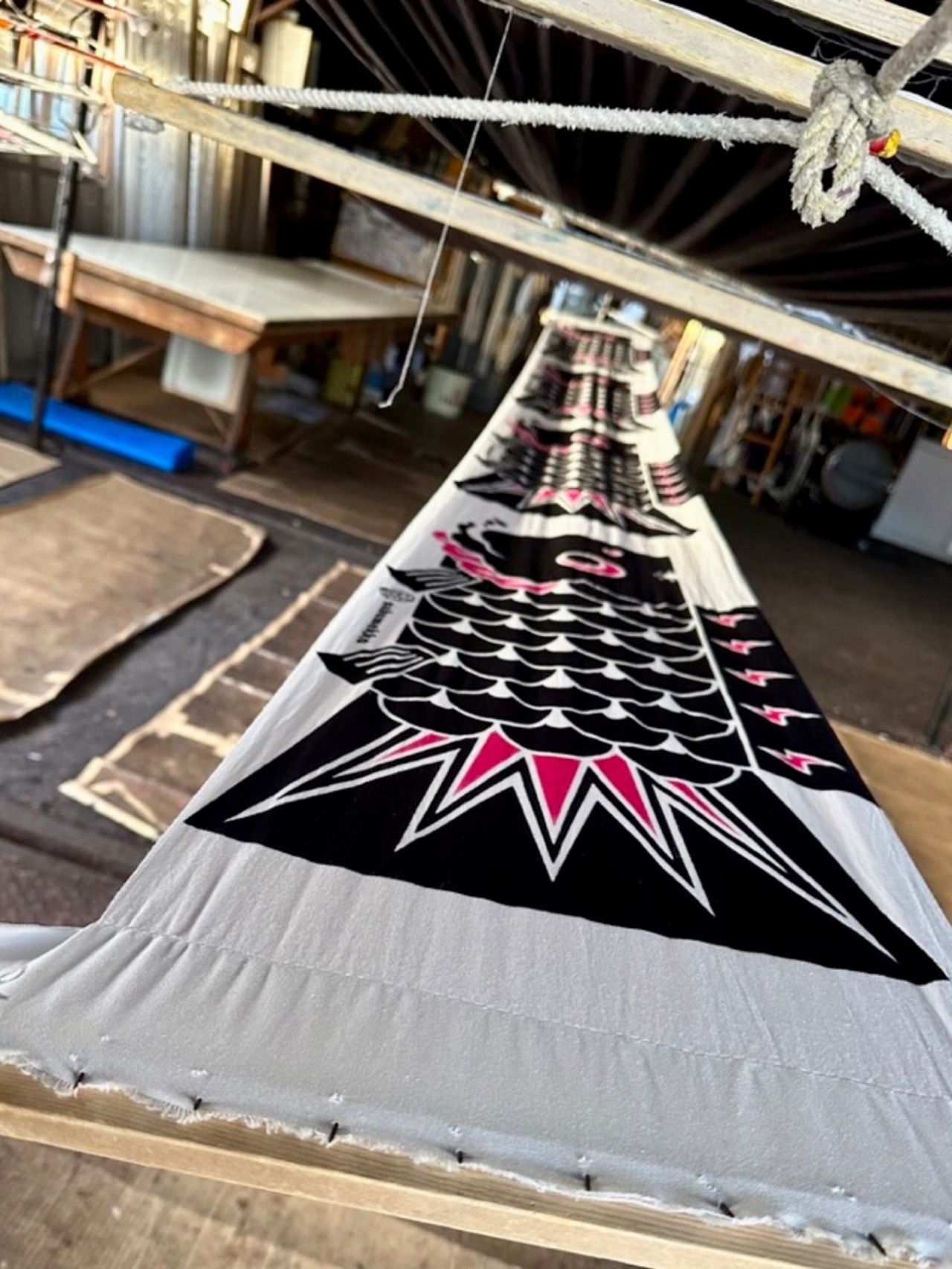 2024年4月、東京品川宿のお寺でのイベント「卍デマーケット」にて 黒×桃色の【ROCK】が直販デビューし、8月に三色展開となって通販をスタートしてまもなく売り切れとなっていたサブメッコオリジナルの鯉のぼり手ぬぐいを2025年の新春に再販売できる運びとなりました!