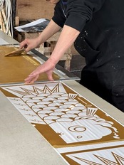 創業百二十を越える旭川の染物の老舗、近藤染工場さまに製作を依頼し【刷毛引き本染め】という伝統技法で 人の手により一枚一枚一色ずつ丹念に、温もりを感じる美しい手ぬぐいに仕上げていただきました。